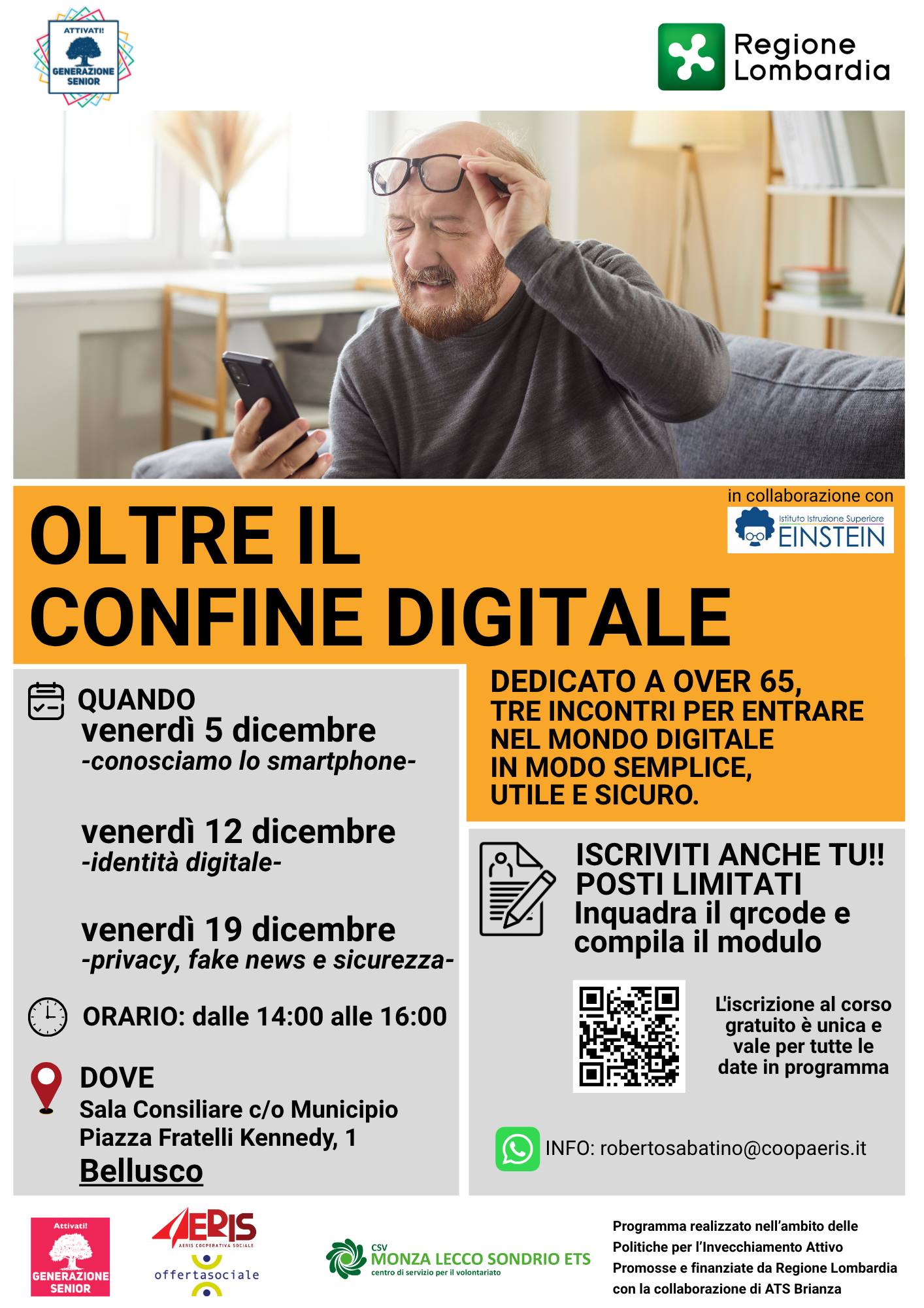OffertaSociale e la cooperativa sociale Aeris organizzano tre incontri dedicati agli over 65 per entrare nel mondo digitale in modo semplice, utile e sicuro.